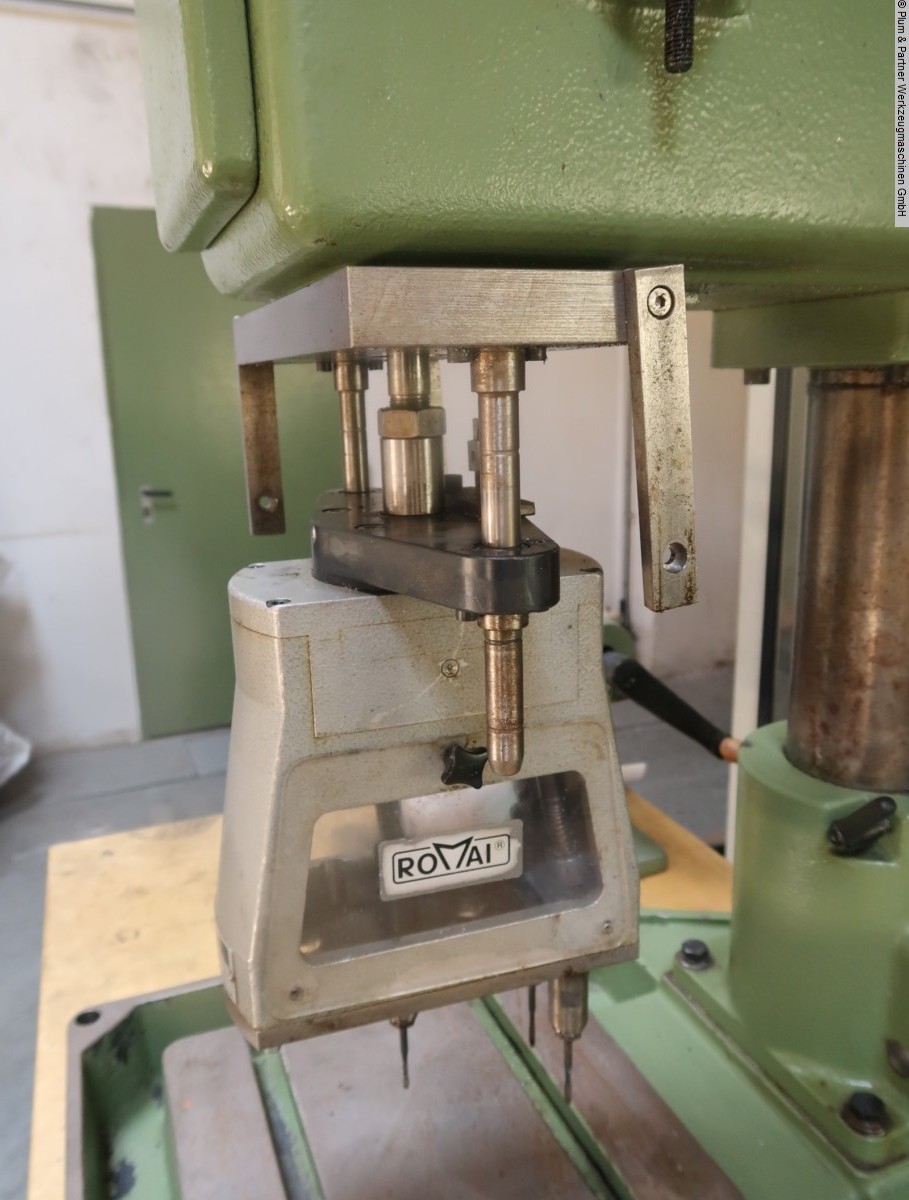 Mehrspindelbohrkopf Romai KF 18 10 11 ( 11 Antriebe, 3 Gelenkwellen vorhanden, feste Bohrbildplatte d.h. verstellbar durch Auswechseln der Spindelaufnahmeplatte, 10 mm Bohrleistung pro Spindel. Aufnahmebefestigung zur Maschinenseite vom Voranwender. Das Baujahr wurde aus dem Baujahr der Bohrmaschine abgeleitet. Es handelt sich um ein Gebrauchtobjekt, daher verkaufen wir unter Ausschluss jeglicher Gewährleistung. LAGERHALTENDER HAENDLER MIT AUSSTELLUNGSHALLE VON 1600 m².