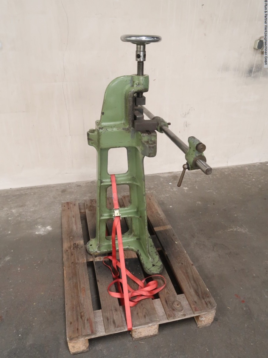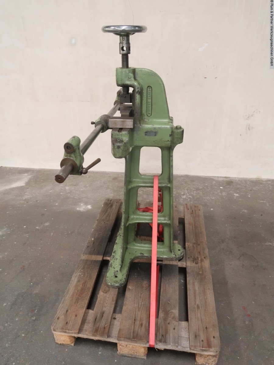 Manuelle Richtpresse für Flacheisen oder Wellen, Aufnahme von Wellen zwischen den Spitzen auf verstellbarer Rundachse. Es handelt sich um eine Gebrauchtmaschine, daher verkaufen wir unter Ausschlussjeglicher Gewährleistung. LAGERHALTENDER HAENDLER MIT AUSSTELLUNGSHALLE VON 1600 m².