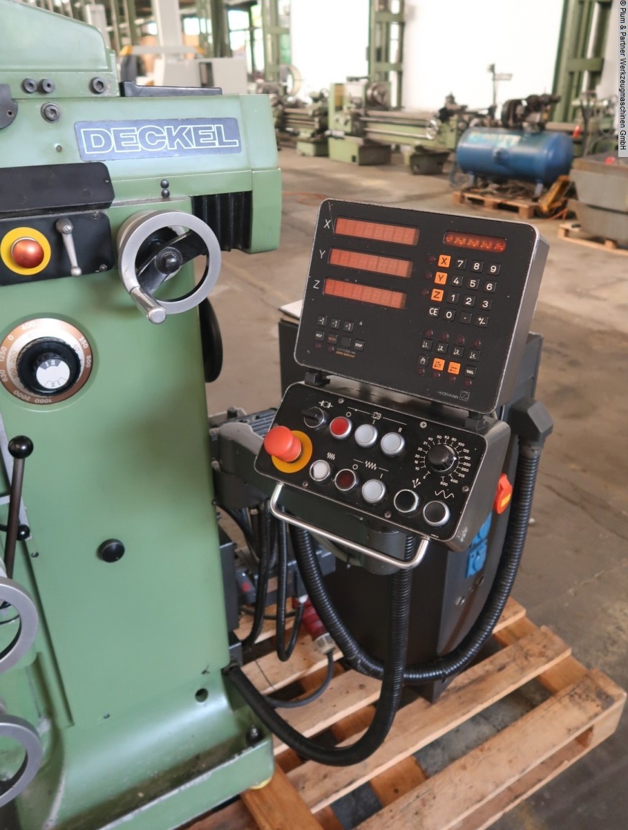 Werkzeugfräsmaschine mit 3-Achsen-Aktiv - Digital-Anzeige " Heidenhain TNC 113 "zum automatischen Einfahren vorgewählter Schlittenpositionen im Absolut- und Kettenmaßverfahren", autom. Vorschübe stufenlos in x + z Achse und y -Achse (quer) manuell, zusätzlich verschiebbarer Oberam 100 mm. Wir bitten Privatinteressenten von einer Anfrage abzusehen, da es sich um eine gut erhaltene Profimaschine handelt und sie meist das Budget von Hobbymechanikern auch durch die MwSt. überschreitet. Es handelt sich um eine Gebrauchtmaschine, daher verkaufen wir unter Ausschluß jeglicher Gewährleistung. LAGERHALTENDER HAENDLER MIT AUSSTELLUNGSHALLE VON 1600 m².