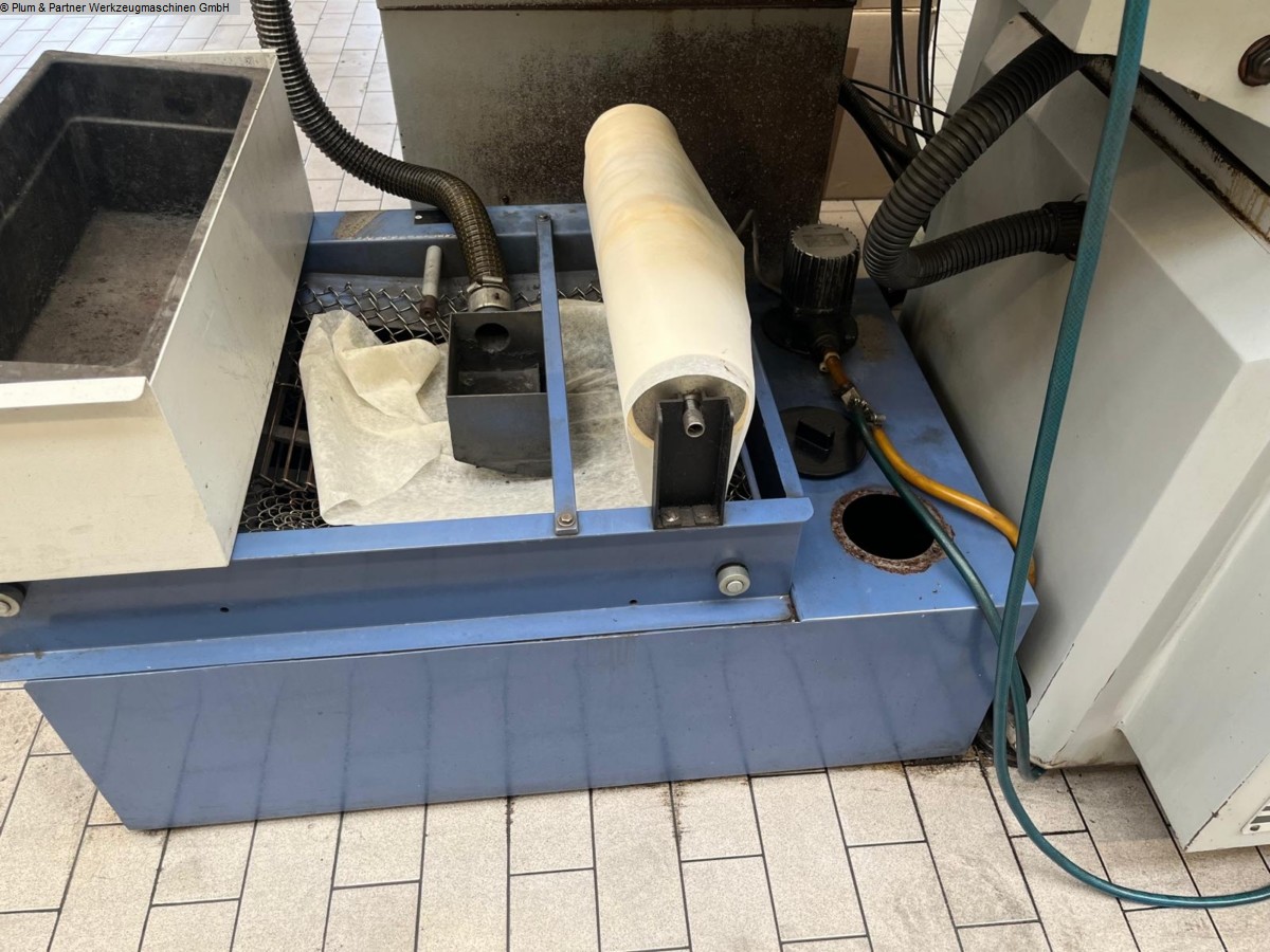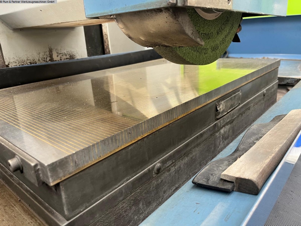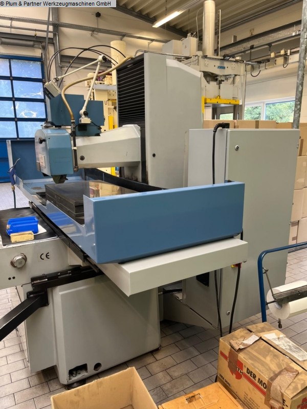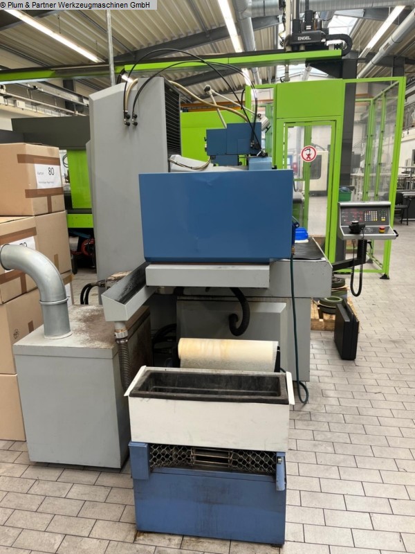 Hydr. Flachschleifmaschine mit AC Steuerung zum autom. Flach- und Einstechschleifen mit autom. Zwischenabrichten sowie Abrichtkompensation einschließlich verschiedenen Zustellbeträgen in den Schrupp- und Schlichtzyklen. Hydr. Tisch-Längsbewegung, servo-gesteuerte Querbewegung, gehärtete Kugelumlaufspindel in höchster Präzisionsklasse, autom. Schmierung der Längs- und Querbewegung. Autom. Senkrechtzustellung über Schrittmotor mit Digitalanzeige zur vorwählbaren Stop-Position. Abrichtgerät zum manuellen bzw. autom. Geradeabrichten der Schleifscheibe. Elektro-Permanent-Magnetspannplatte mit autom. Entmagnetisierung und Haftkraftregelung. Automatisches Ausfeuern vorwählbar 0-8 Ausfeuerhübe nach Programmablauf mit automatischem Tischhalt seitlich, Eilgang-Senkrechtverstellung, elektronisches Handrad für manuelle Vertikal-bewegung (Y) und Querbewegung (Z). Es handelt sich um eine Gebrauchtmaschine, daher verkaufen wir unter Ausschluss jeglicher Gewährleistung. LAGERHALTENDER HAENDLER MIT AUSSTELLUNGSHALLE VON 1600 m².