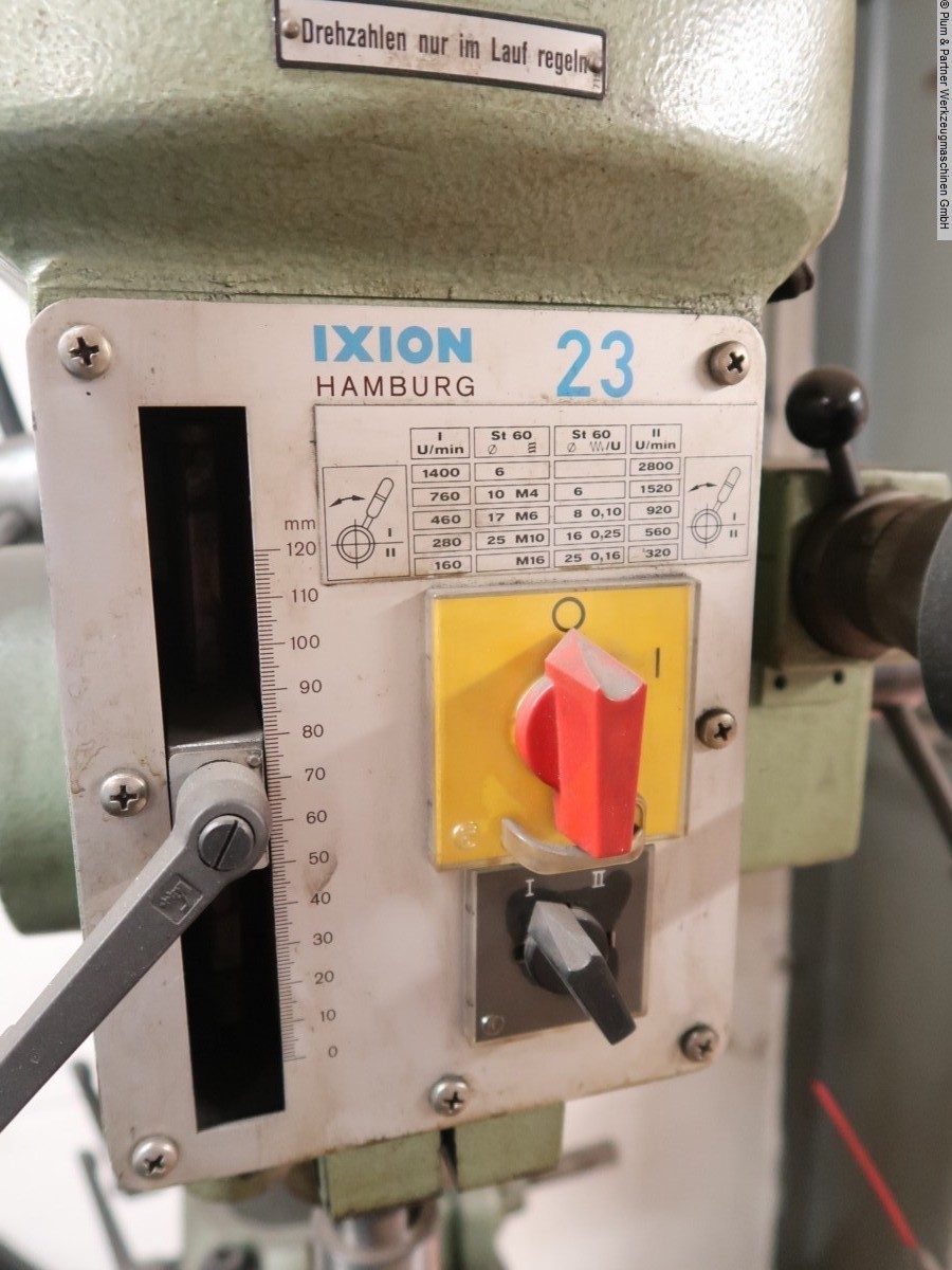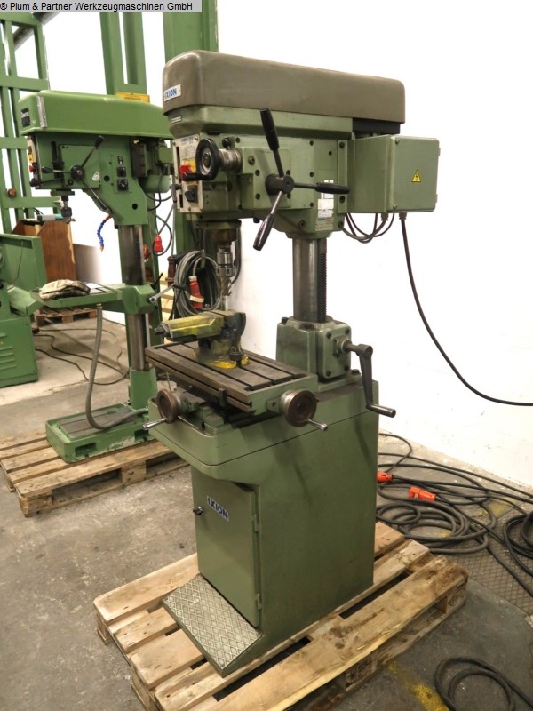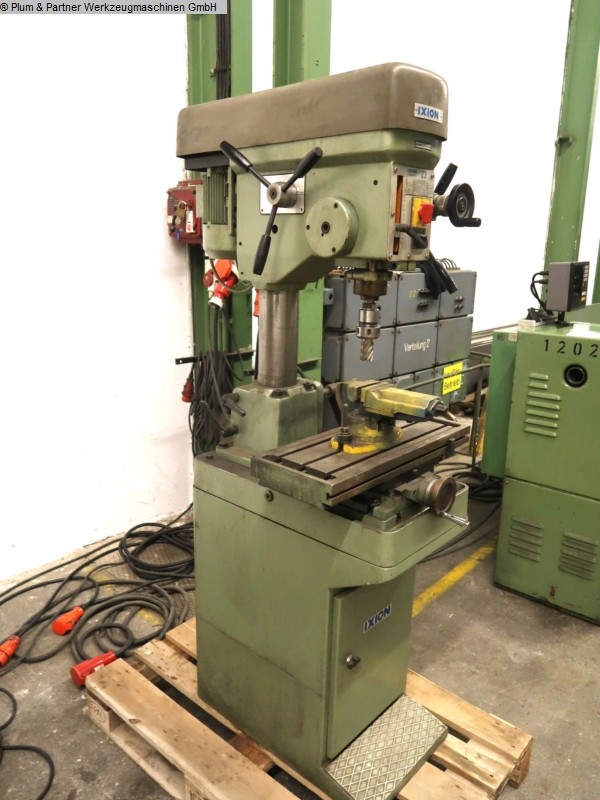 Markenfabrikat IXION: Bohr- Fräsmaschine auf Pultständer mit stufenloser Drehzahlregiulierung, manuellem Spindelvorschub über Griffkreutz oder Feinvorschub über Handrad, 2-stufigem Motor, Kreuztisch manuell verstellbar. Es handelt sich um eine Gebrauchtmaschine, daher verkaufen wir unter Ausschluss jeglicher Gewährleistung. LAGERHALTENDER HAENDLER MIT AUSSTELLUNGSHALLE VON 1600 m²