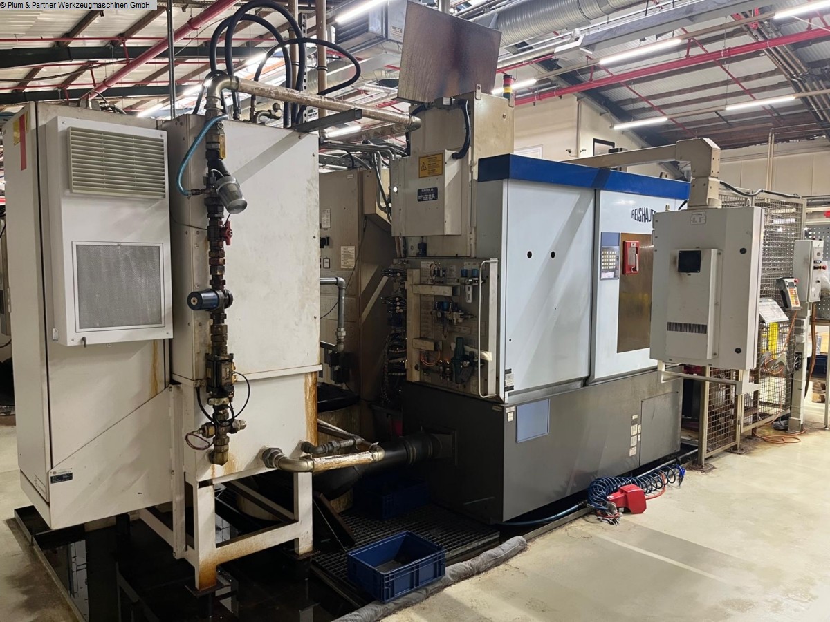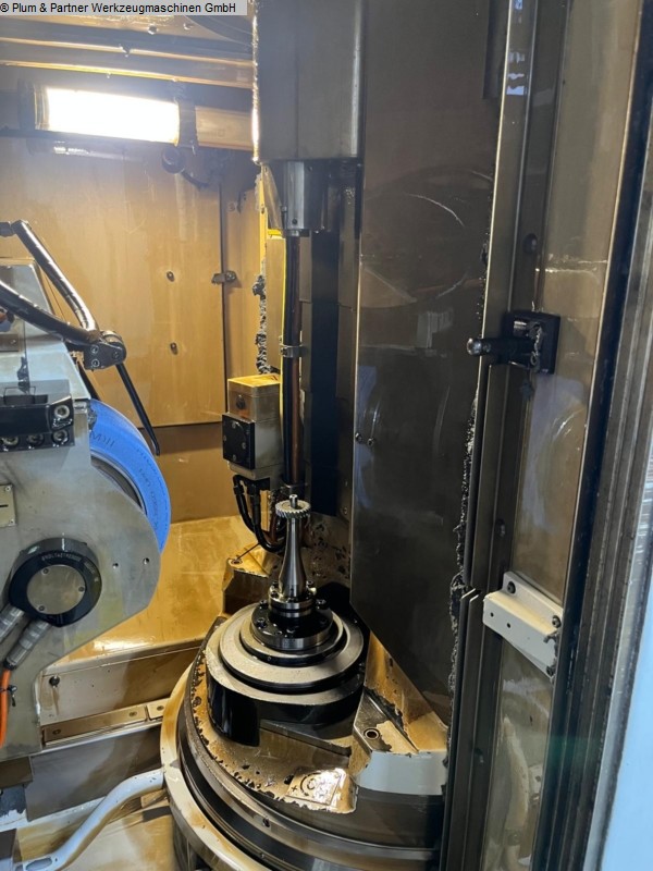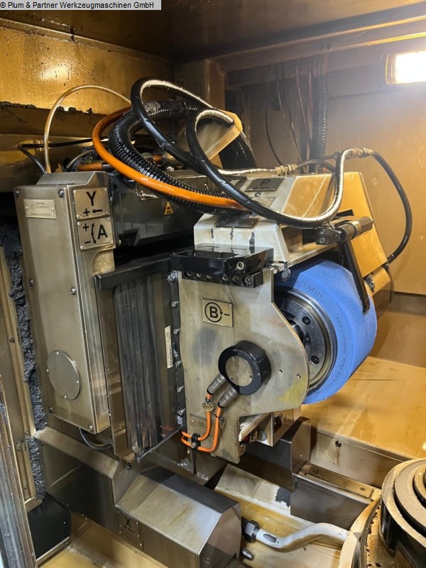 CNC-gesteuerte Zahnrad - Schleifmaschine Die CNC-Steuerung Siemens erlaubt die Eingabe aller relevanten Verzahnungsdaten und das Einrichten des Werkstückes im Dialog mit der Steuerung. Programmiersprache (deutsch/englisch) umschaltbar, und DNC- Schnittstelle für die Ein- und Ausgabe von Daten. Die Maschine arbeitet im kontinuierlichen Wälz-Schleifverfahren mit automatischem Schleifzyklus und mit automatischem Nachprofilieren der Schleifscheibe auf der Maschine. Der Werkstückschwenkwinkel wird elektronisch, schnell und genau verfahren und hydr. geklemmt, bedeutet schnellere Rüstzeit und auch einfachere Teilebeladung. Durch die Shift-Schleifeinrichtung wird das Werkstück während des Schleifens tangential an der Schleifscheibe vorbeigeführt so dass sich ständig gleichförmiges Schleifscheibenprofil im Eingriff befindet. Hydraulische Werkstückspannung mit Außenspannzange und Gegenspitze im Werkstückschlitten, komplette Arbeitsraumabdeckung mit Schiebetüren, separater Schalt- und Steuerschrank, separate Hydraulik-Anlage in Kabine. Keine zugehörige Kühlmittelanlage vorhanden (Zentralversorgung), Eine Kühlanlage mit Saugbandfilter Fabr. Hoffmann, Mod. HSF 150 SE/K, BJ 2007 kann zugekauft werden. Steuerung Siemens, Tankvolumen 2800l, Literleistung 100 l/min, 46 kW, Gewicht 4,5 t, Abmessungen 3,7 x 2,5 x 3,56 m. Es handelt sich um eine Gebrauchtmaschine, daher verkaufen wir unter Ausschluss jeglicher Gewährleistung.