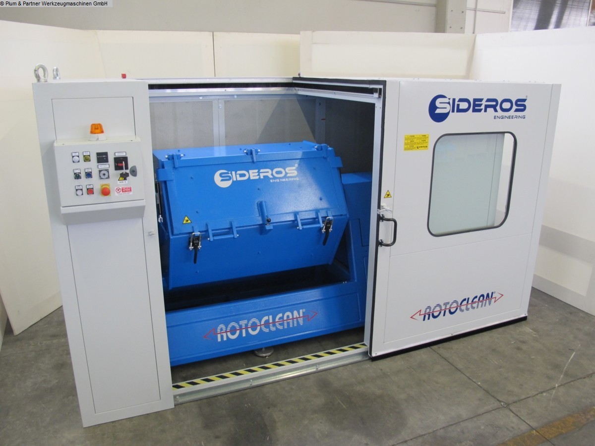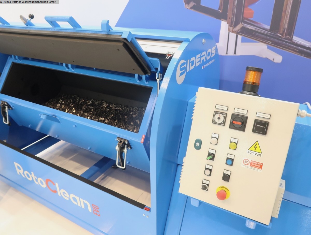 New deburring machine for safe and to efficiently deburr workpieces. Suitable for heavy applications. It is suitable for light to medium applications. The OXY model is available for heavy workpieces. 6 - square drum lined with durable, vulcanized rubber thickness 36 mm, locking cover with gas pressure springs, roller shutters to protect againstthe rotating Container, stable design, easy operation. Control by timer on control surface, main and emergency stop switch. The maximum fillingquantity is 40% of the container volume and corresponds to 800 kg consisting of 500 kg workpieces + 300 kg deburring medium = hard manganese balls Pic 6 or cast iron pentagons Pic 7. These are over Sideros available. Stepless speed adjustment via frequency converter approx. 13-22 rpm (2850,-- ) Soundproof housing (65/70 Db) photo 7 and Sideros ECO B2 dust extraction against Available at extra cost. For complicated workpieces, the manufacturer recommends 100 kg sample parts of the material to be deburred to the factory for testing before ordering. VIDEO on our website. Machine dealer with own stock of 1600 m².