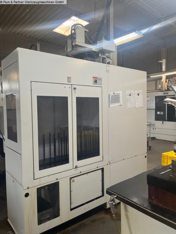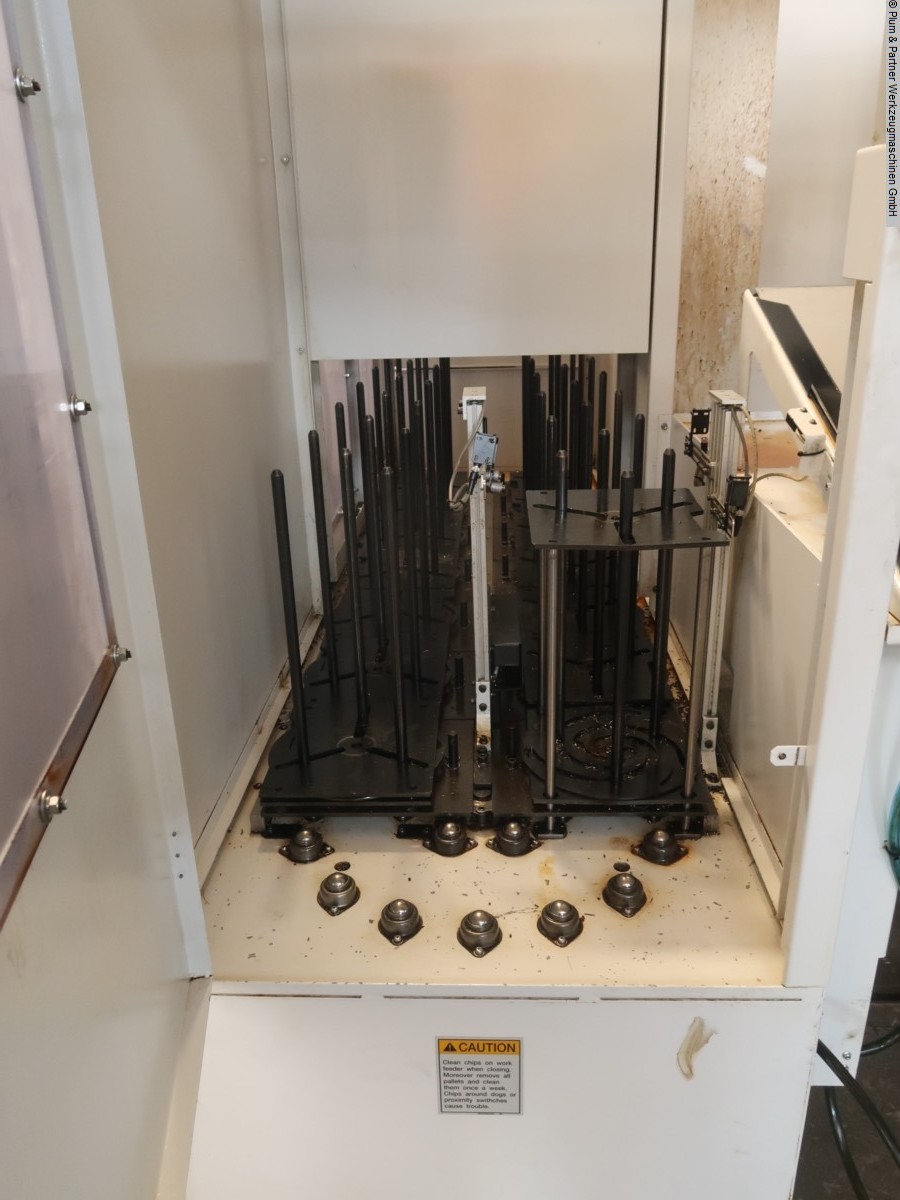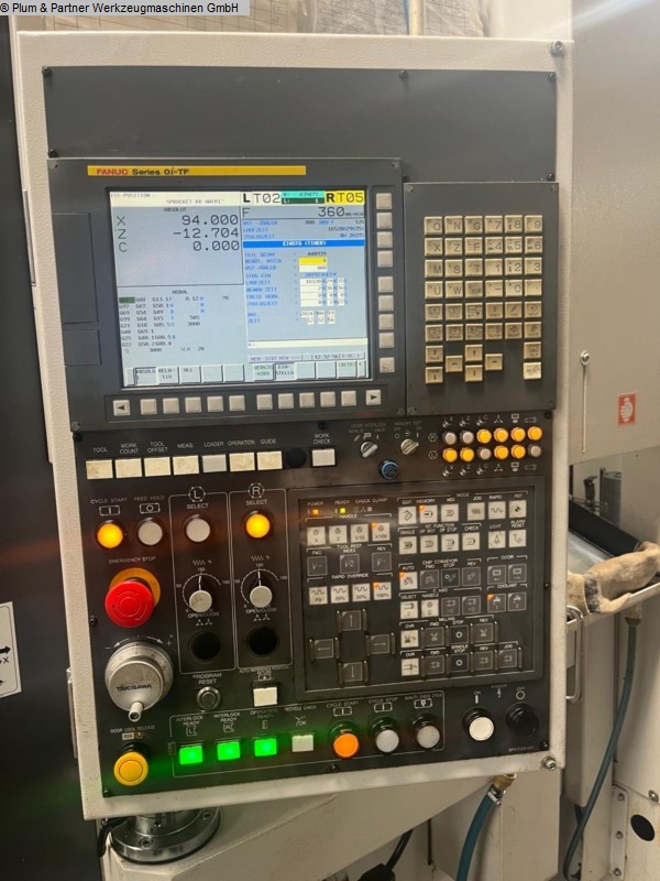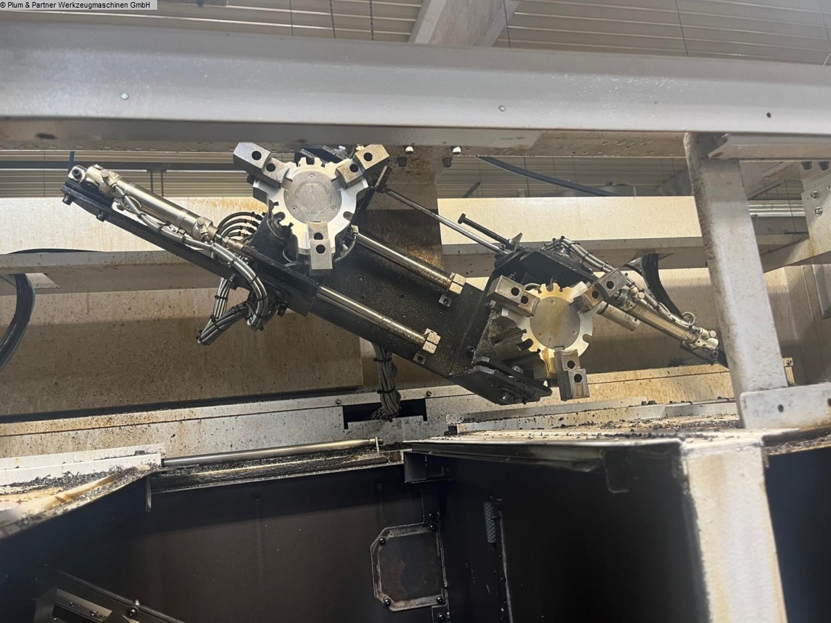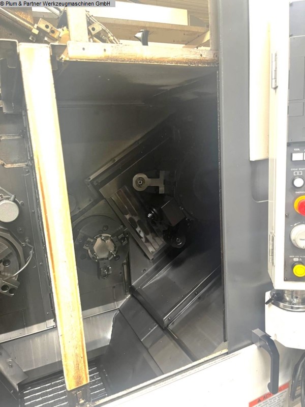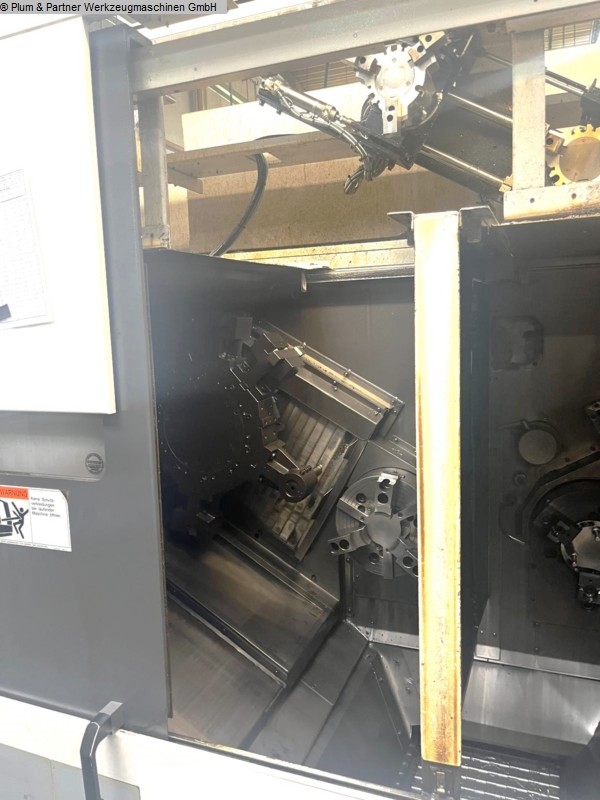 Front lathe - Horizontal double spindle machine with gantry loader Raku Raku and workpiece magazine on both sides, C-axis and 10-way turret for both sides with driven tools on just the right side, 14-way workpiece pallet magazine. Machine dealer with own stock of 1600 m².